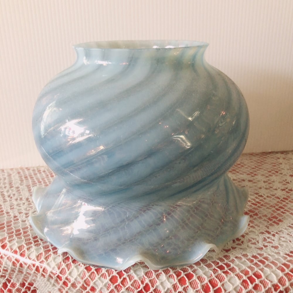 エレガントなブルースワールラージシェードは、淡い青色の美しい渦巻き模様が魅力的です。光が透過することで、洗練された雰囲気を室内に漂わせ、リビングやダイニング、寝室などで活躍します。多様なインテリアスタイルに調和し、特別な空間を演出するアイテムです。