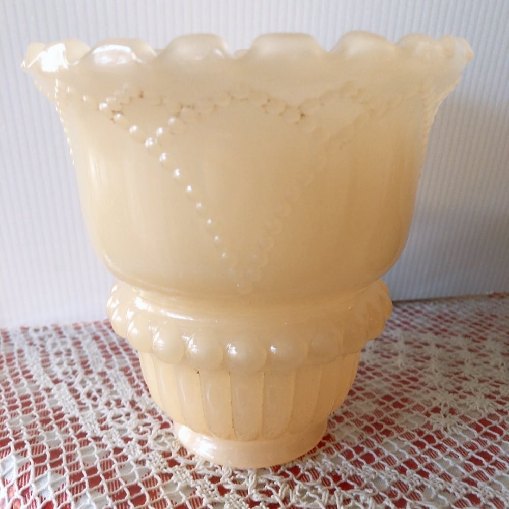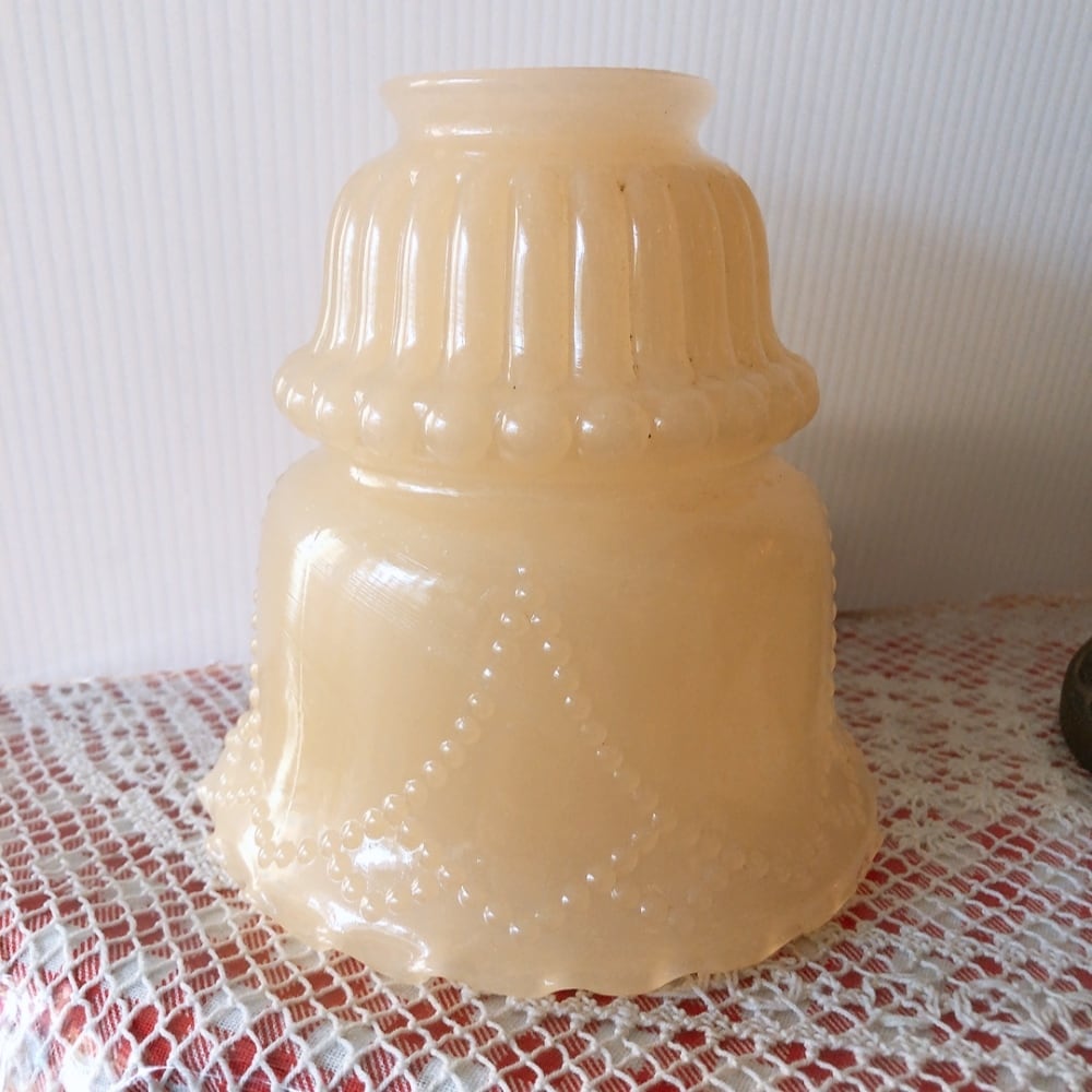 エレガントなアンティークカスタードヴァセリンシェードは、柔らかなカスタード色が魅力で、光を透過することで温かみのある輝きを生み出します。どのようなインテリアスタイルにもぴったり合い、リビング、ダイニング、寝室など、さまざまな空間で心地よい雰囲気を演出するアイテムです。