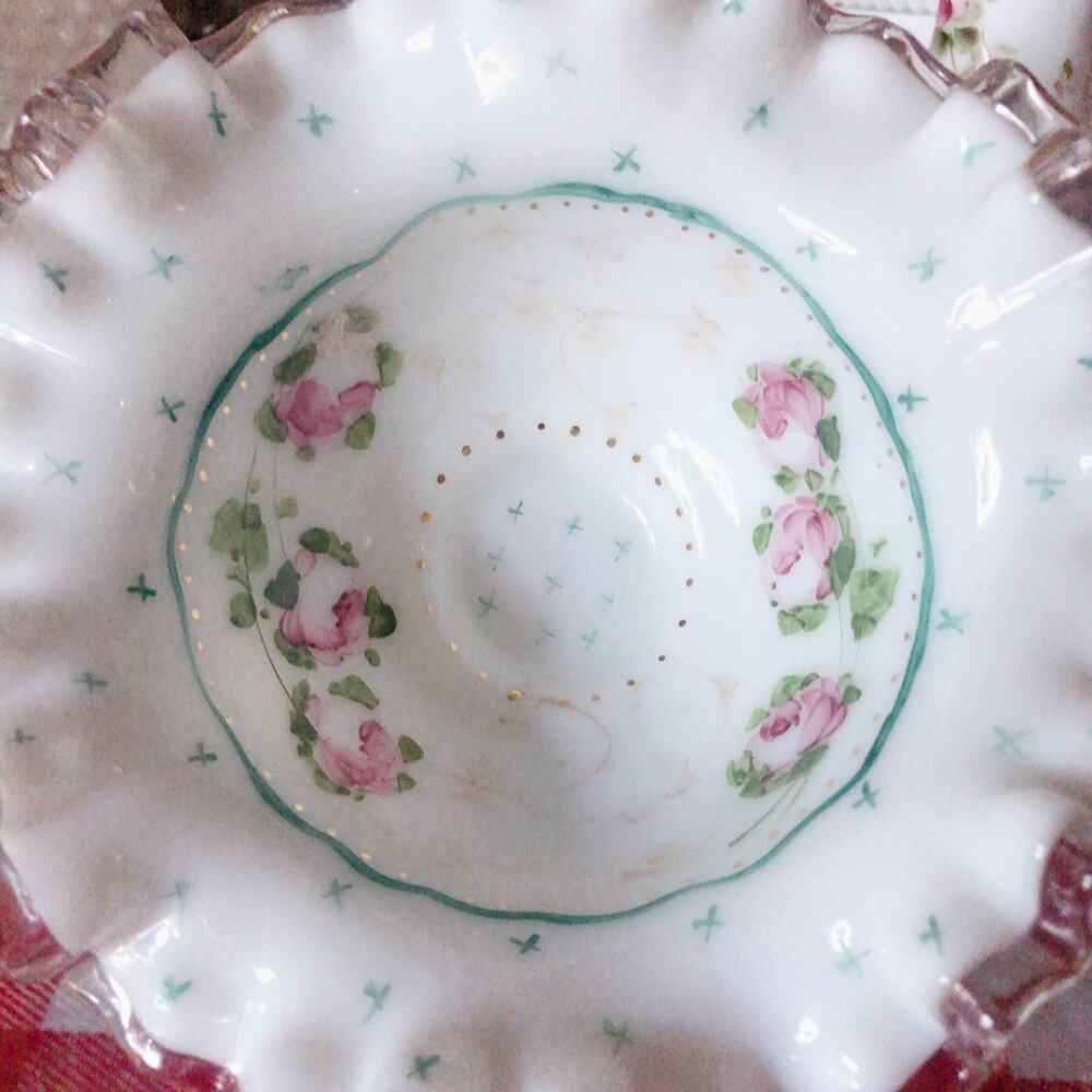 ハンドペイントのバラ柄が素敵なラッフルボウル