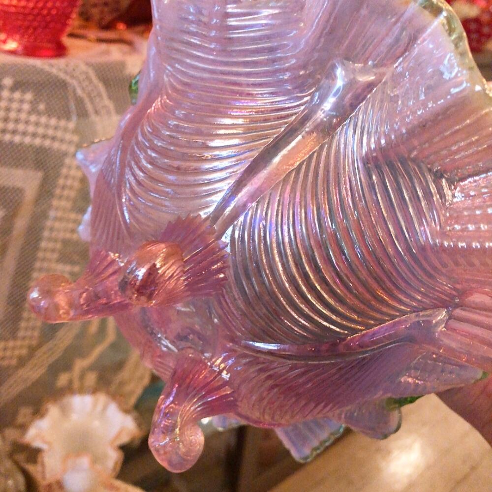 角度によってオーロラに輝くピンクガラス